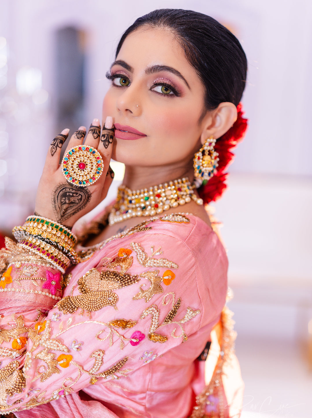 This dreamy baby pink kurti lengha set radiates elegance and charm. The outfit features a beautifully tailored kurti, lengha skirt, and dupatta, all crafted from luxurious shimmer tissue fabric. The soft pastel hue paired with delicate hand embroidery creates a perfect balance of sophistication and festivity, making it an ideal choice for weddings, engagements, or festive celebrations.